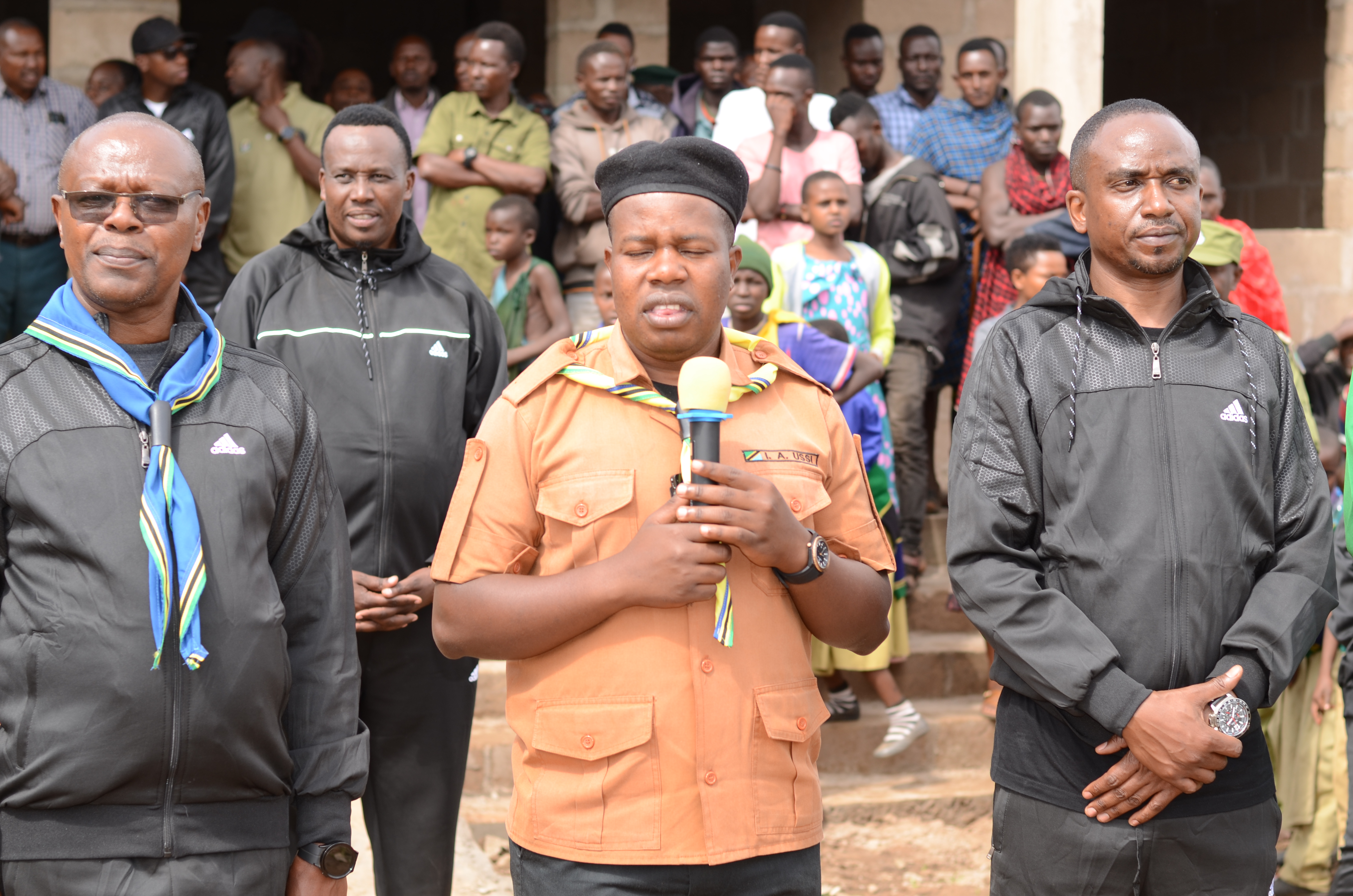Kiongozi wa mbio za mwenge wa uhuru 2025 Bw. Ismail Ali Ussi akiwa kwenye picha ya pamoja na Mkuu wa Wilaya ya Ngorongoro Brigedia Jenerali Wilson Sakulo na Mkurugenzi Mtendaji Bw. Murtallah S. Mbillu wakati wa zoezi la kuumbiza Mwenge wa uhuru.