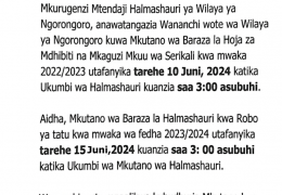 Mkurugenzi mtendaji wa Halmaahauri ya Wilaya ya Ngorongoro Bw. Muryallah Sadiki Mbillu, anapenda kuwaalika na kuwakaribisha Wananchi wote wa Wilaya ya Ngorongoro kuhudhuria na kushiriki katika Mikutan...